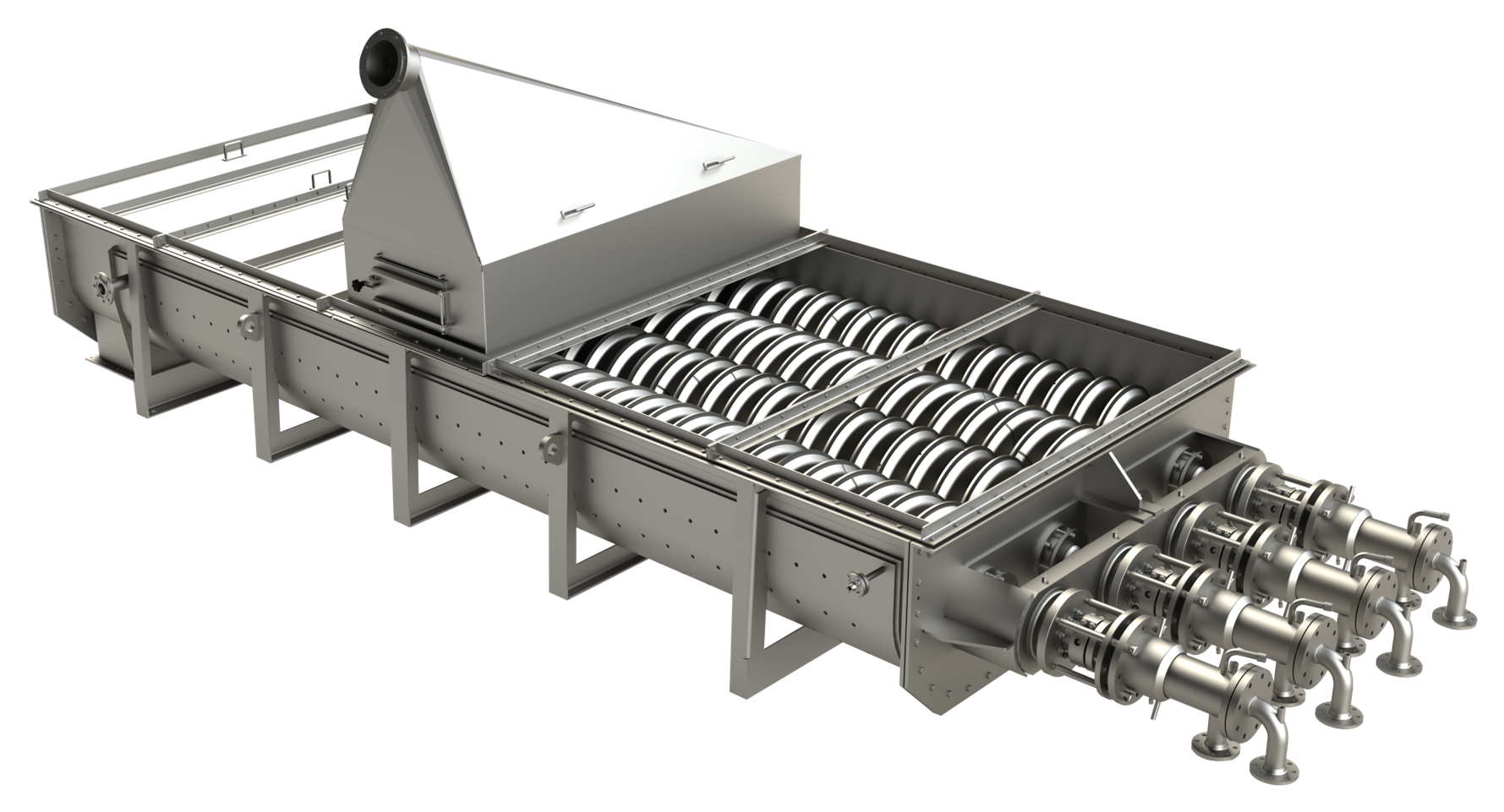The screw trough can optionally be equipped with a gas extraction device and a double jacket to increase the heat exchanger surface. A new development in drive technology allows the screws to be individually driven by motors controlled by frequency converters.